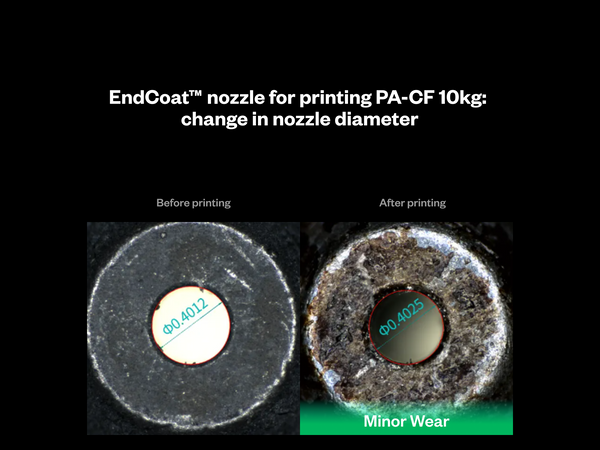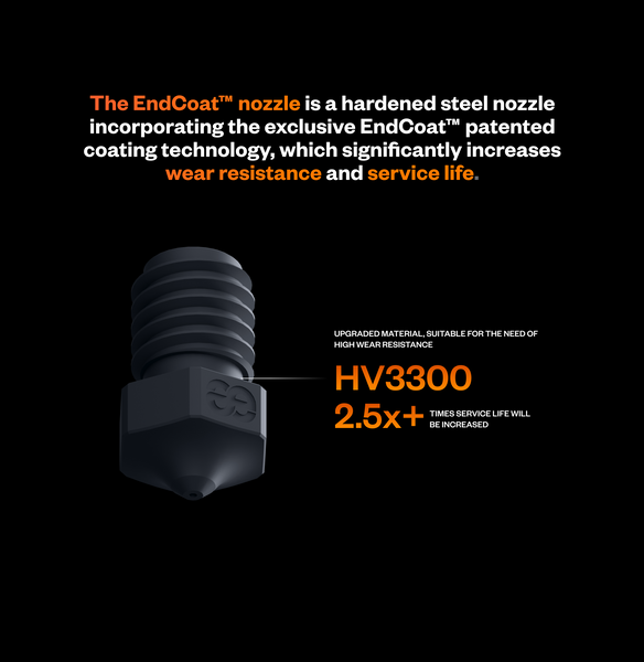The EndCoat™ nozzle is a hardened steel nozzle incorporating the exclusive EndCoat™ patented coating technology, which significantly increases wear resistance and service life.